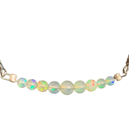 White Opal Round Graduated Bar Bracelet with Adjustable Chain (October)
