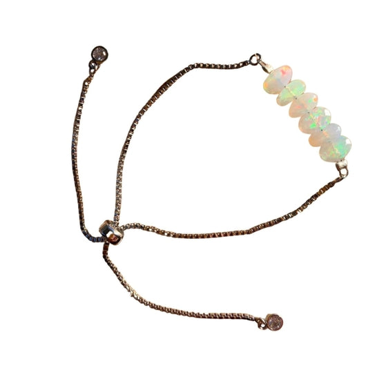 White Opal Rondelle Bar Bracelet with Adjustable Chain (October)