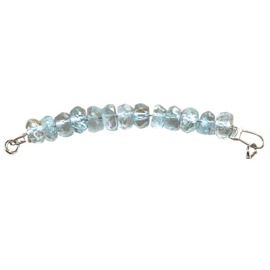 Aquamarine Bracelet Faceted Rondelle Beads with Adjustable Chain (March)