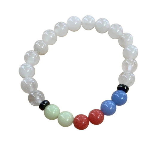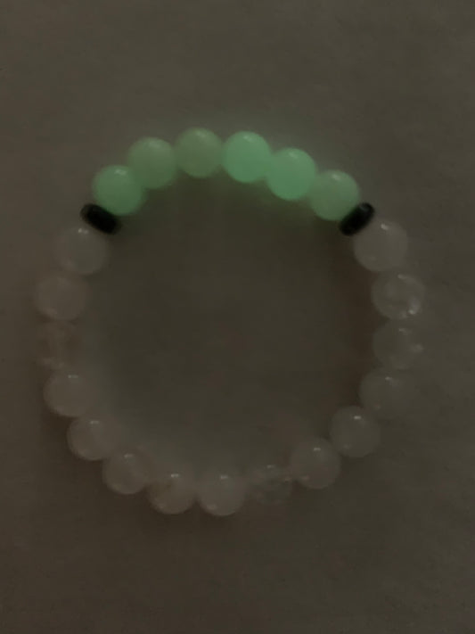 Aragonite Multi with Clear Quartz Bracelet 8 mm Round Beads - Naturally Glows in the Dark