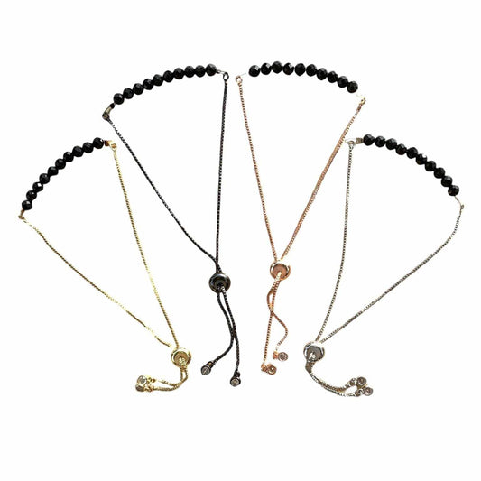 Black Onyx Bracelet Faceted Round Beads with Adjustable Chain