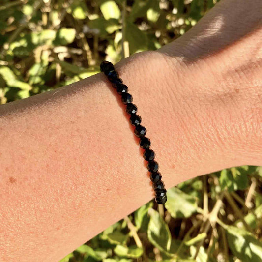 Black Onyx Bracelet 4 mm Faceted Round Beads