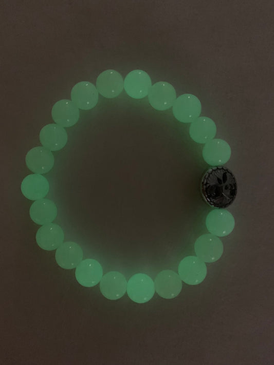 Aragonite Coral Bracelet 8 mm Round Beads - Naturally Glows in the Dark