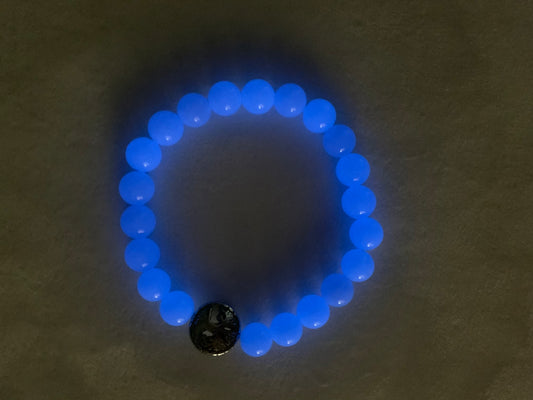 Aragonite Blue Bracelet 8 mm Round Beads - Naturally Glows in the Dark