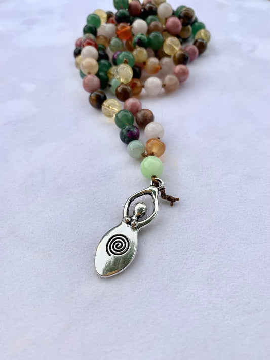 Aphrodite Mala - Fertility - Chrysoprase, Carnelian, Rose Quartz, Moonstone, Rhodonite, Tiger Eye, Citrine, Green Aventurine, Ruby Zoisite