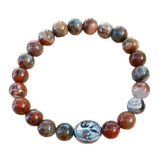 Phoenix Rising Bracelet 8 mm Lepidolite and Druzy Round Beads