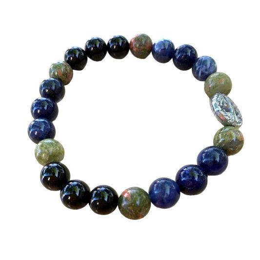 Public Speaking Bracelet 8 mm Onyx, Unakite, Sodalite, Lapis Lazuli Round Beads