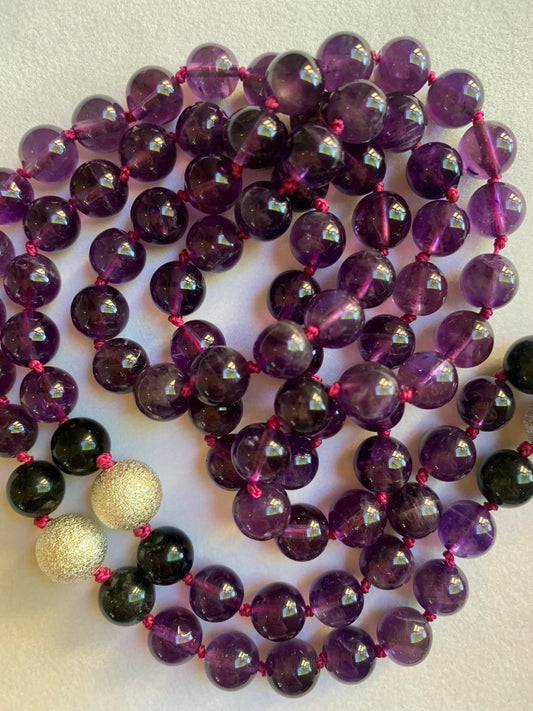 Nyx Mala- Nighttime Manifestation - Amethyst, Rainbow Obsidian, "Stardust" Beads