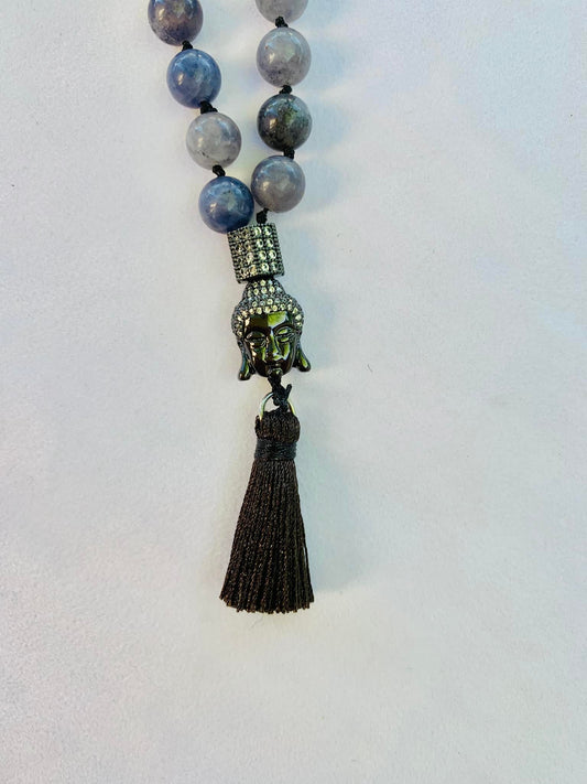 Persephone Mala - Connecting With Your Master Guide - Iolite, Shungite, Black Metal Accent Beads with Rhinestones