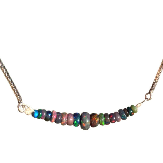 Ethiopian Opal Graduated Bar Bracelet with Adjustable Chain (October)