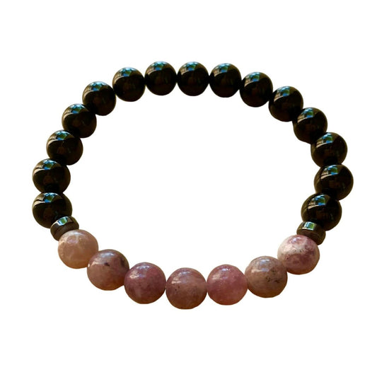 Grief Relief Bracelet 8 mm Lepidolite and Black Onyx Round Beads